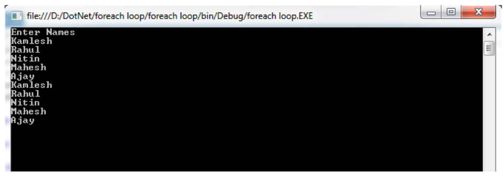 Foreach loop is used with arrays, collections and generics. If any variable contains set of values and if you do not know the maximum value or ending value then foreach loop is used to display all the values.