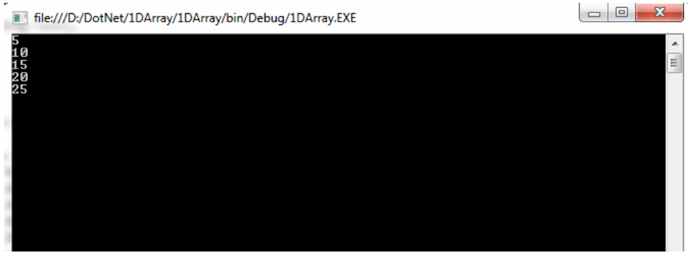 Console.WriteLine("{0}\n{1}\n{2}\n{3}\n{4}", a[0],a[1],a[2],a[3],a[4]);