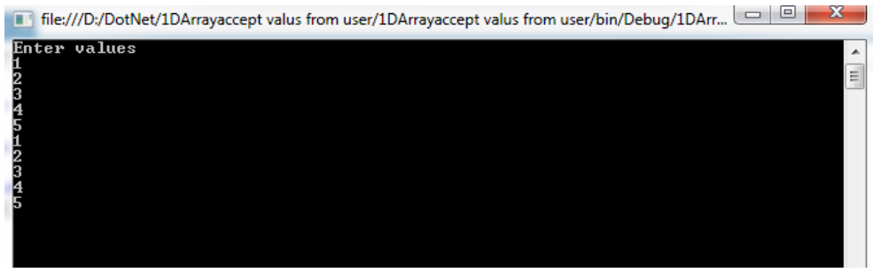 3) Accept five values from user and display them using single Dimensional array.