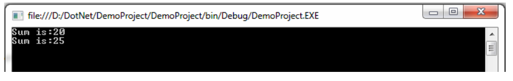 Console.WriteLine(Display(10, 20));