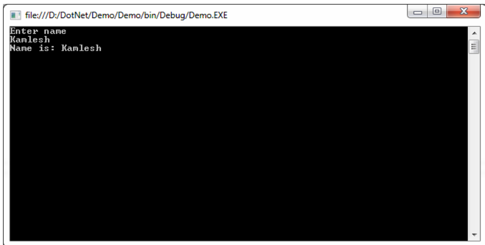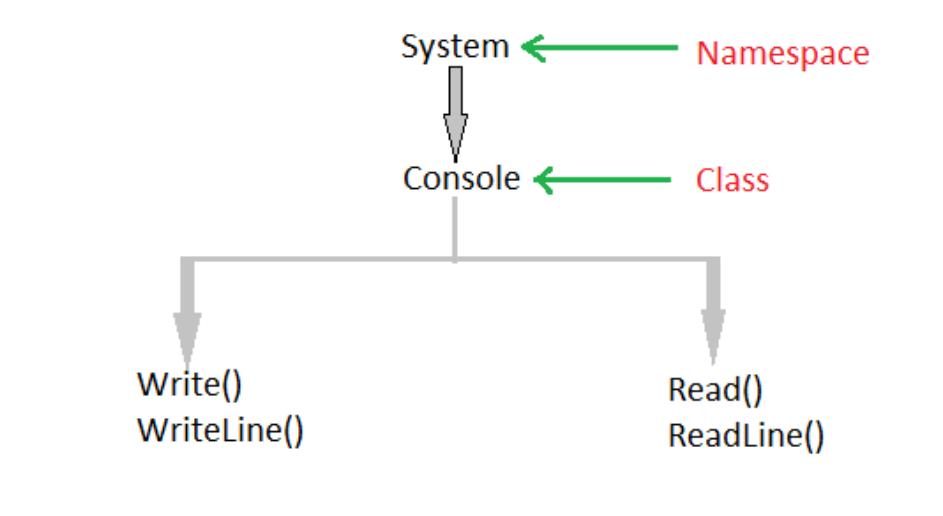 C# contains two types of notations. They are pascal notation and camel notation. In C# namespace, class and method names will be in pascal notations(Title case). And variable names will be in camel notation. Console class in System namespace contains static methods. They can be accessed with the class name. Dot(.) is called member access operator. It is used to access variables and methods in the class. In C# the line should be terminated with ';'. To execute the program, press F5 or click on start debugging icon in the tool bar.