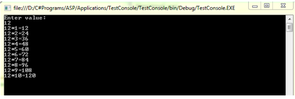 Console.WriteLine(a + "*" + i + "=" + a * i);