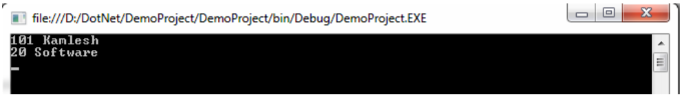 Console.WriteLine(eno+"\n"+ename+"\n"+hra);